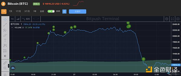 过去24小时,美元指数在攀升至约 20 年来的最高水平后稍作喘息,回到 114 关口下方,这给风险资产反弹带来了短暂的机会。比特币一度突破 20,000 美元,触及一周多以来的最高水平。然而,随着美股进一步跌入熊市,BTC 再度回落,比特币终端数据显示,截至发稿时交易价格约为 19,016.21 美元,24小时跌幅约 1%,以太坊也下跌了不到 1%。