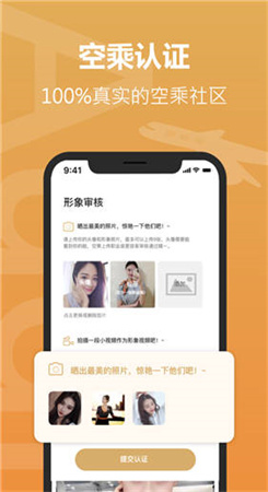3、每一位空姐用户都是经过严格的认证,确保真实信息,杜绝欺骗;